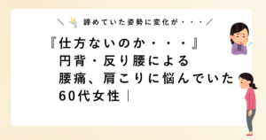 初回から姿勢の歪みが目立ち、特に猫背による肩まわりの負担が大きい印象でした。