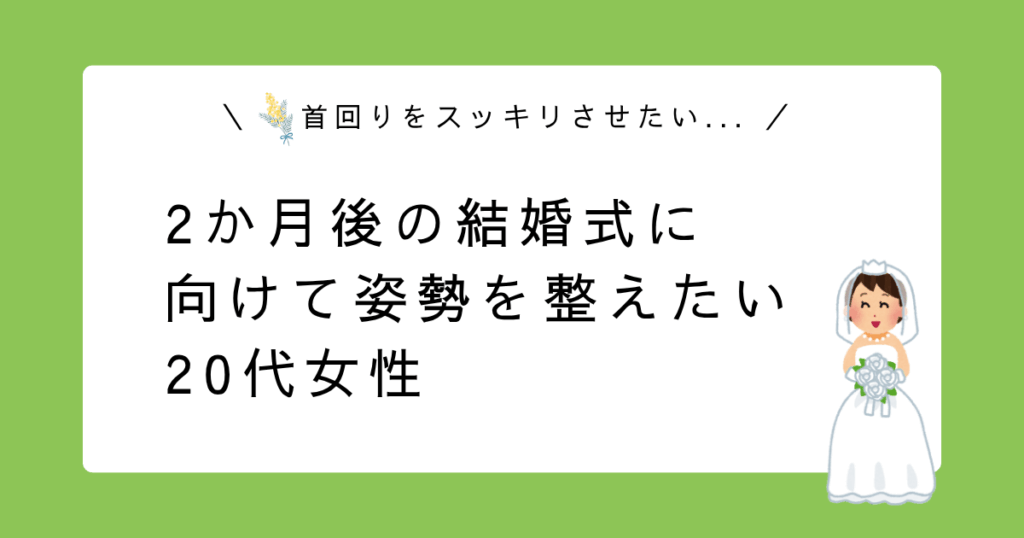 【ブライダル整体】二か月後の結婚式に向けて姿勢を整えたい20代女性|楽トレで首・肩ラインをスッキリ