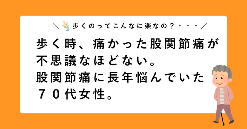 歩くと股関節が痛い70代女性が「久しぶりに楽に歩けた」と感じた理由|左股関節の違和感と向き合ってきた方への整体的アプローチ
